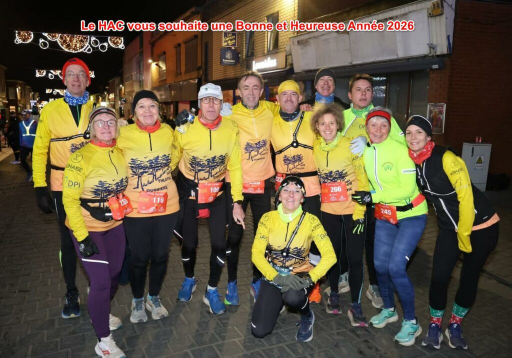 Au milieu des congés de fin d’année, la course nocturne et festive entre Frameries et Colfontaine a connu son habituel succès, malgré le froid piquant de cette année ! +2 au départ, mais le vent changeait le ressenti : les couches étaient nécessaires pour les 14 athlètes du HAC qui se sont présentés au départ ce samedi 27 décembre 2025 !